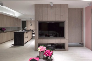 個性粉色現(xiàn)代簡約風(fēng)格50平米小戶型客廳電視背景墻裝修效果圖